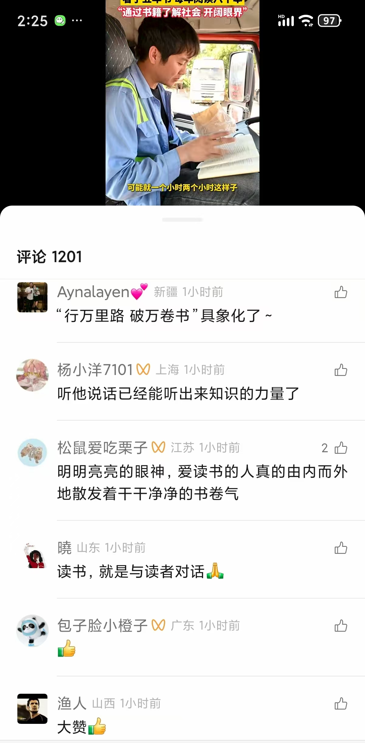 “方向盘握得住生活,也装得下诗和远方”“这才是真正的阅读,不在空间,而在心境”“在他身上看到了坚持的力量”……网友们的留言带着滚烫的真诚,字里行间是共鸣和懂得。有人说,陈浩的故事让他想起了自己曾经坚持的阅读时光,那些在书桌前、台灯下与书相伴的日子,突然变得清晰而温暖;也有人表示要重新拾起书本,像陈浩一样利用碎片时间阅读,在忙碌生活里为自己开辟一片精神角落。